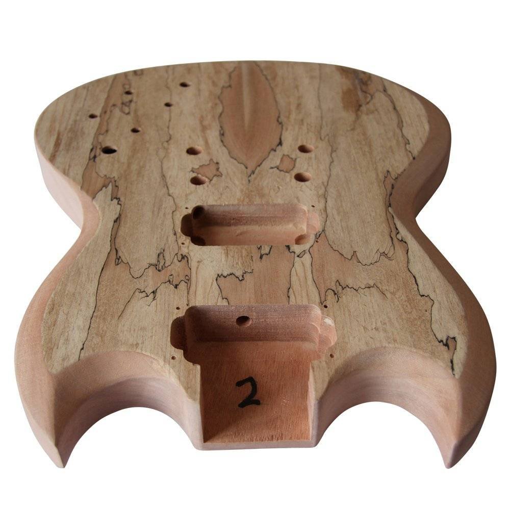 - Mahogany body 1 or 2 part with Spalted Maple Maple Veneered Top