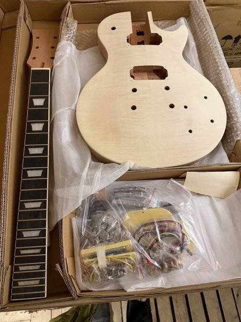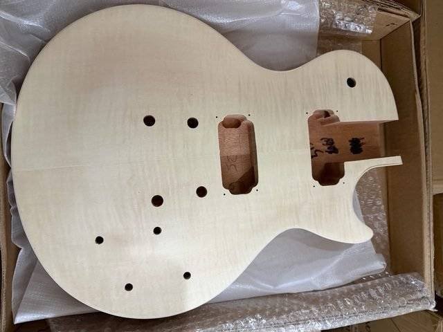 • Coban Guitars Electric Guitar DIY Body LP740 CLEARANCE 515 Flamed Chrome Cream Fittings.
