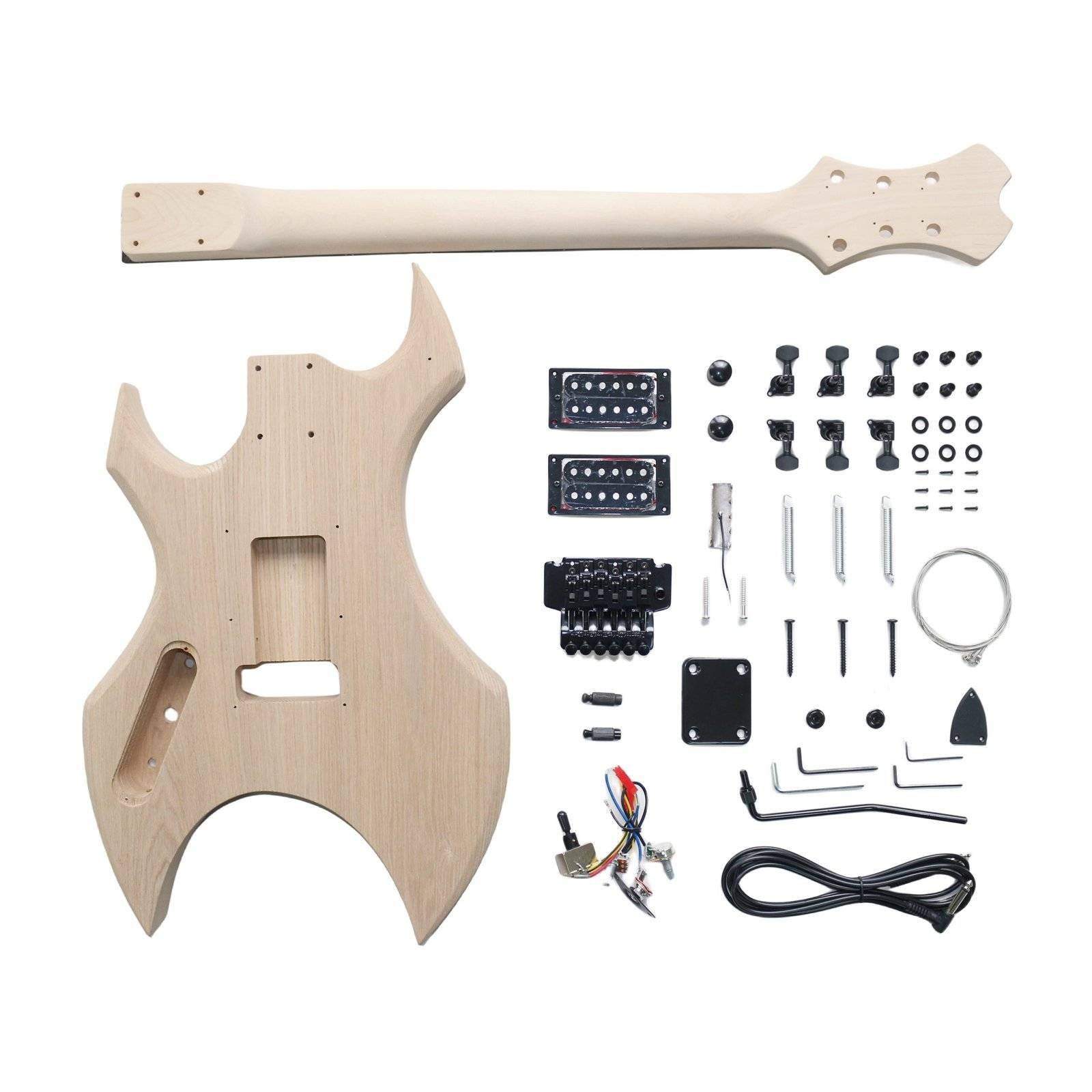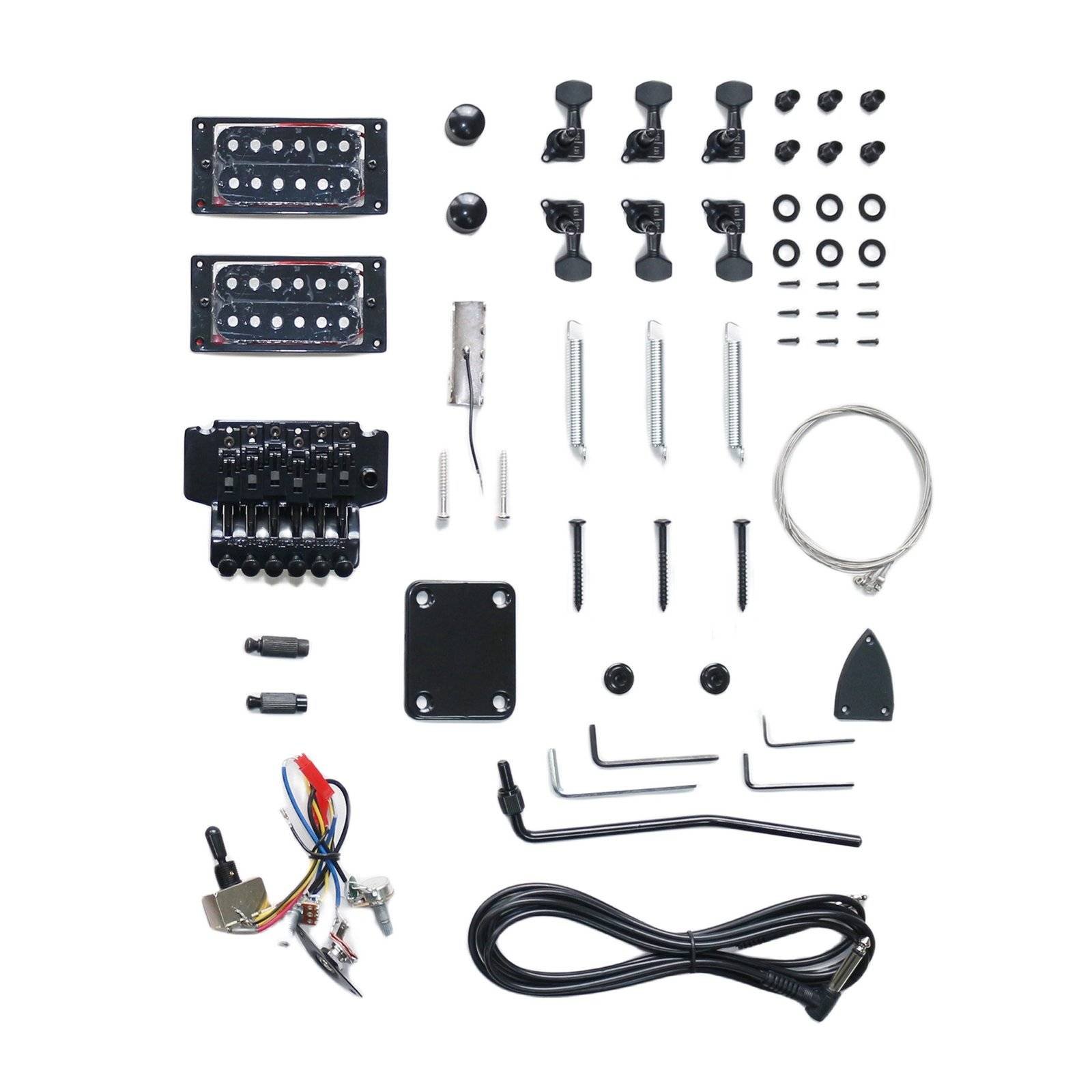 - Locking Bridge Assembly: The kit includes a locking bridge assembly with a tremolo arm for expressive playing.