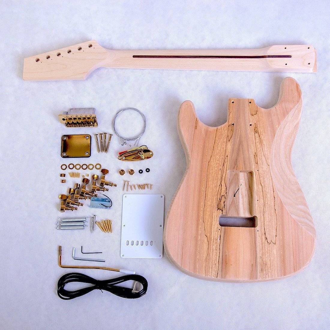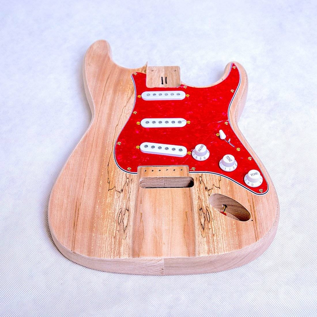 • Electric Guitars DIY Kit ST4SS Ash Body Spalted Maple both Side Red Pearl Pickguard