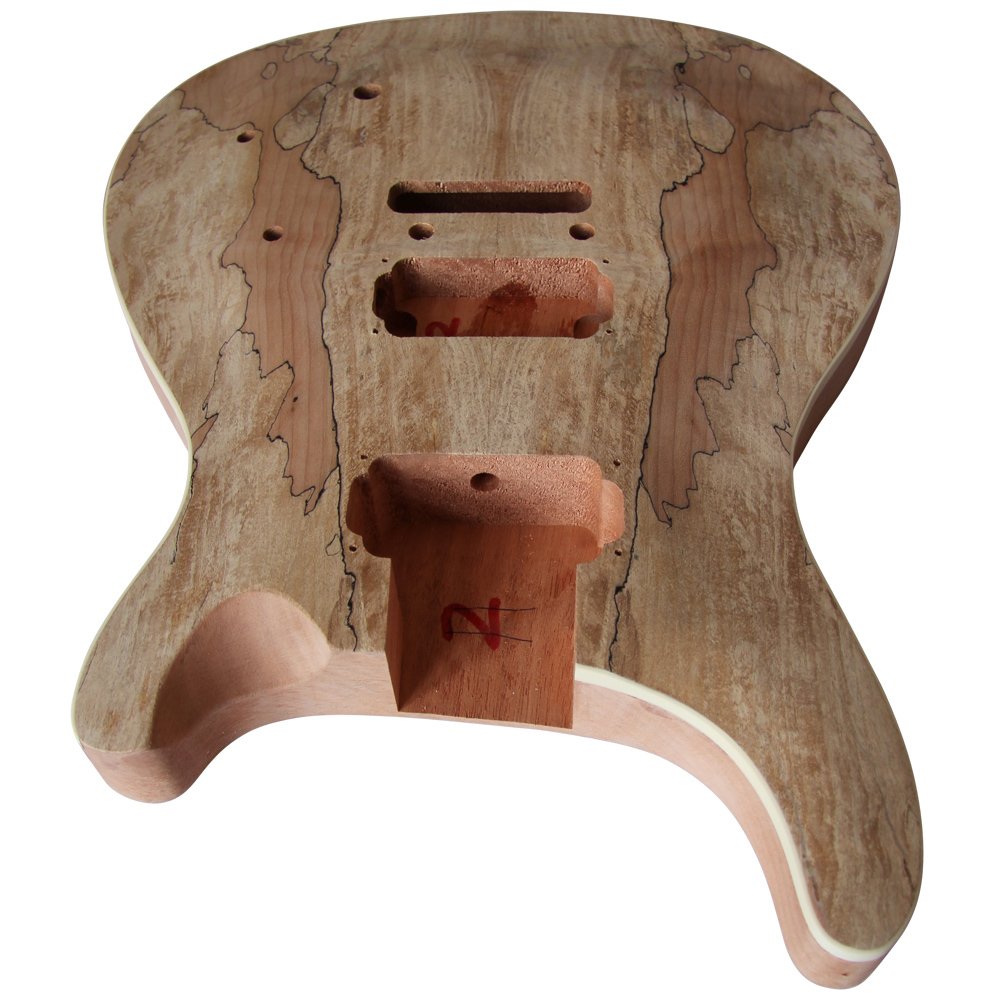 • Right handed kit with 1 or 2 part Solid Mahogany Body with Spalted Maple Veneer .